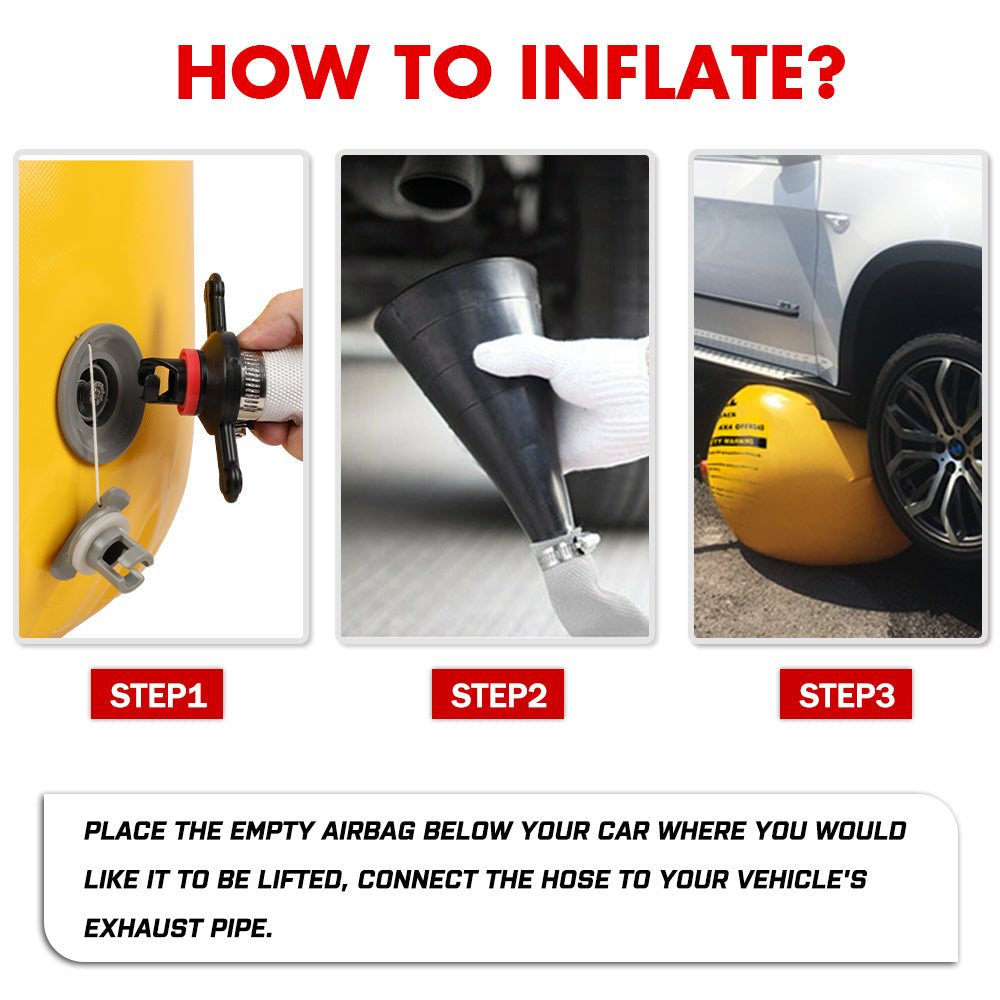 [Unique role]The exhaust jack can be used on hard ground and special terrain such as sand, mud and snow. Air jack can lift up to 5000kg of vehicles, which is equivalent to the weight of a truck. Therefore, the jacks can be applied to most car.