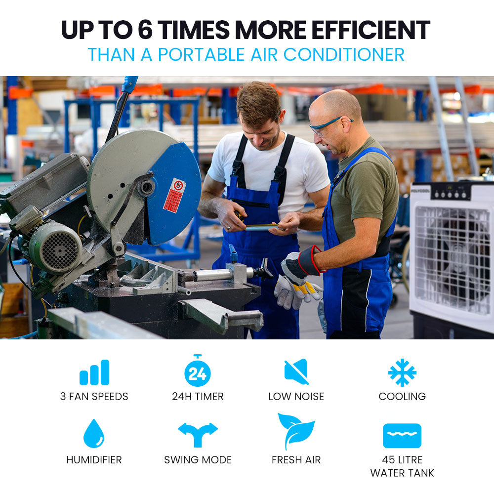 Its high power, low maintenance and portable design with locking castor wheels make it perfect for keeping staff happy in commercial and industrial premises such as automotive workshops, gyms, offices and warehouse units.