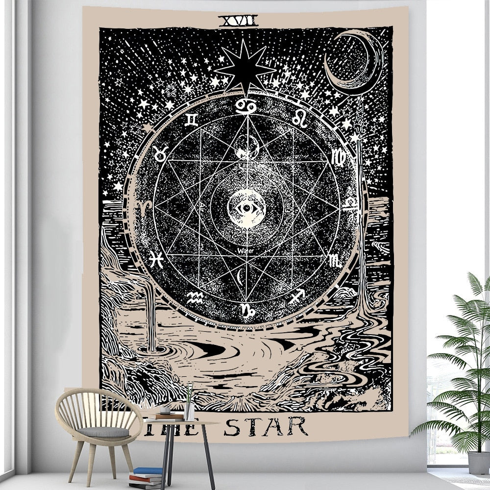 Anyhouz Tapestry Black Star 95X70 cm Tarot Card Psychedelic Scene Art Hippie Bohemian Decoration Sheets