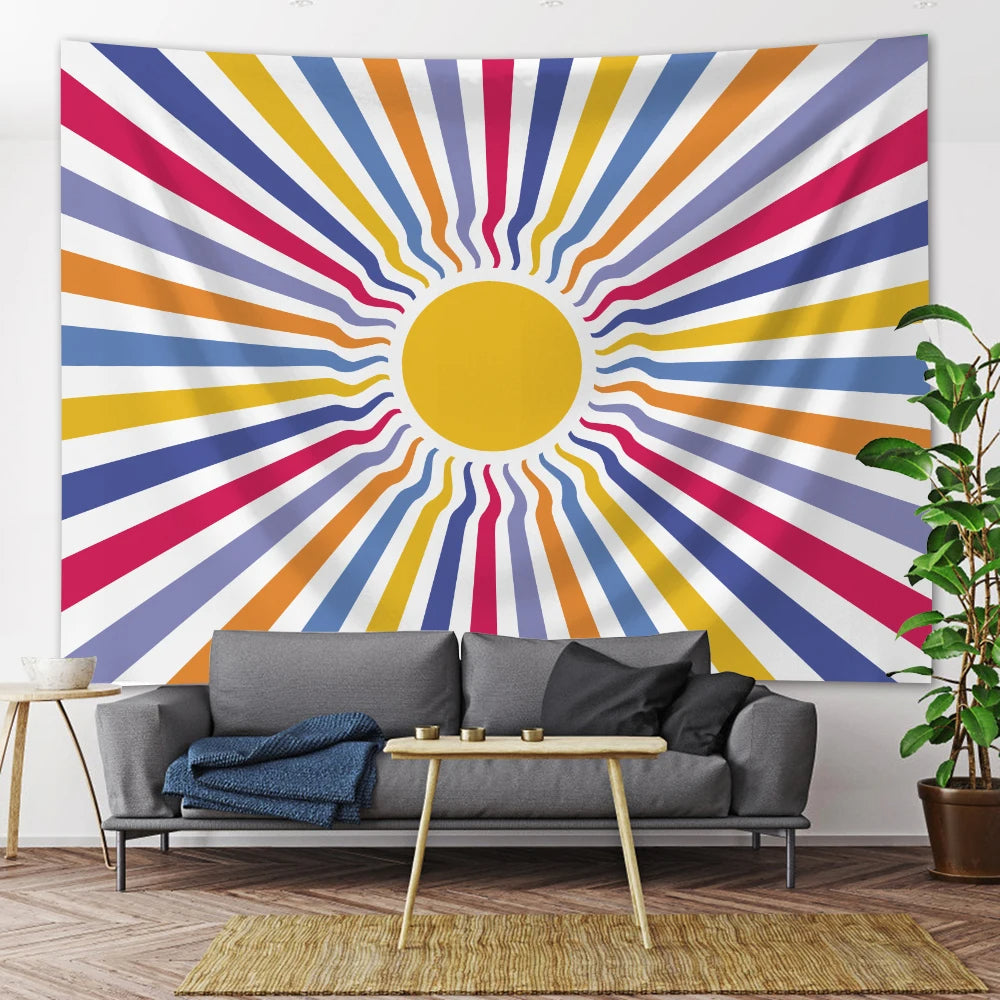 Anyhouz Tapestry Blue Sun Rays 95x70cm Psychedelic Scene Art Hippie Bohemian Decorative Sheet