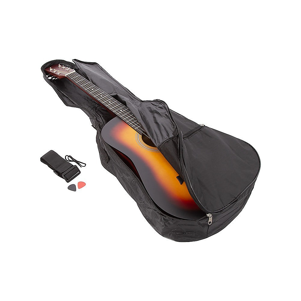 Whether you're jamming on the porch or singing by the campfire, this 38 Acoustic Cutaway Steel-String Guitar is the perfect companion. Designed for beginner and intermediate players, it delivers rich, balanced tones in a beautifully crafted body. Made from laminated linden with a hard wood neck and maple wood fingerboard, this guitar combines durability, comfort, and classic aesthetics.