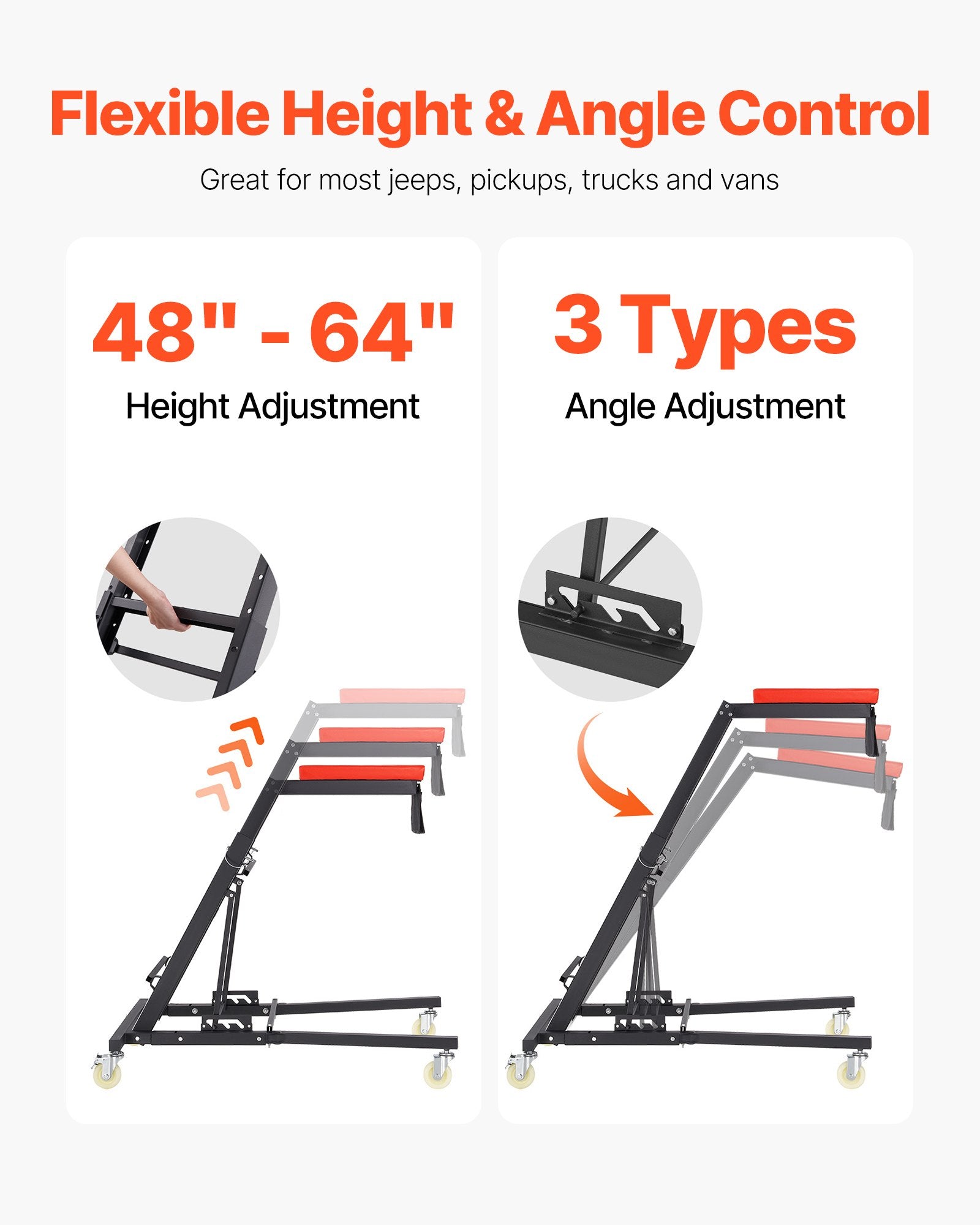 VEVOR Automotive Topside Creeper, Engine Creeper 42.5"-64.8", 181.44KGS Capacity High Top Creeper, 4 Swivel Caster Wheels, Padded Deck, Creeper for Home Garage, Workshop Repair Maintenance