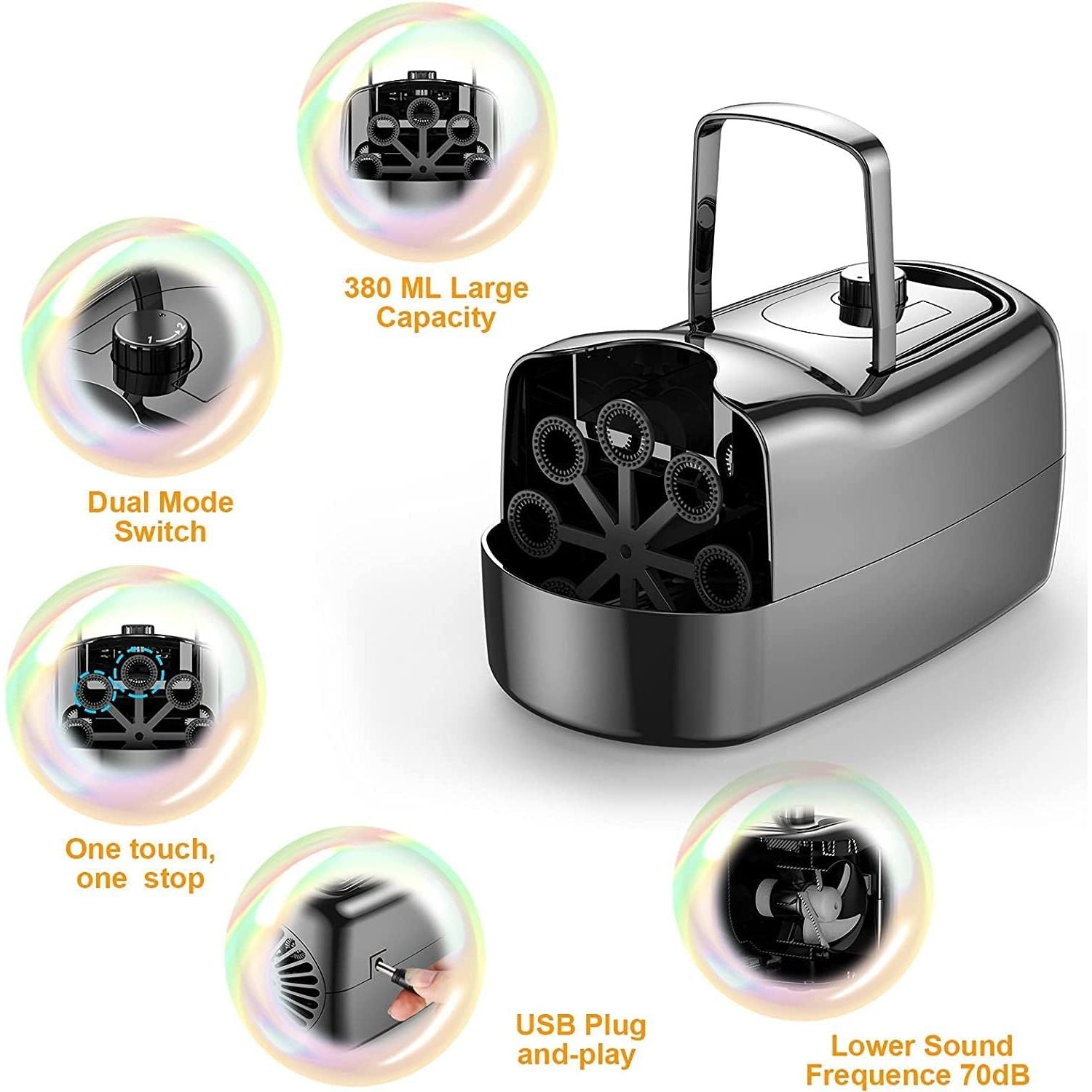 • Create a magical bubble wonderland with this Fun Automatic Bubble Machine. Perfect for kids, toddlers, and adults, it produces up to 5,000 beautiful bubbles per minute � enough to fill any backyard, park, pool area, or playground with a rolling wave of dazzling bubbles that sparkle in the sunlight. Enjoy hours of good wholesome fun with this amazing bubble machine.