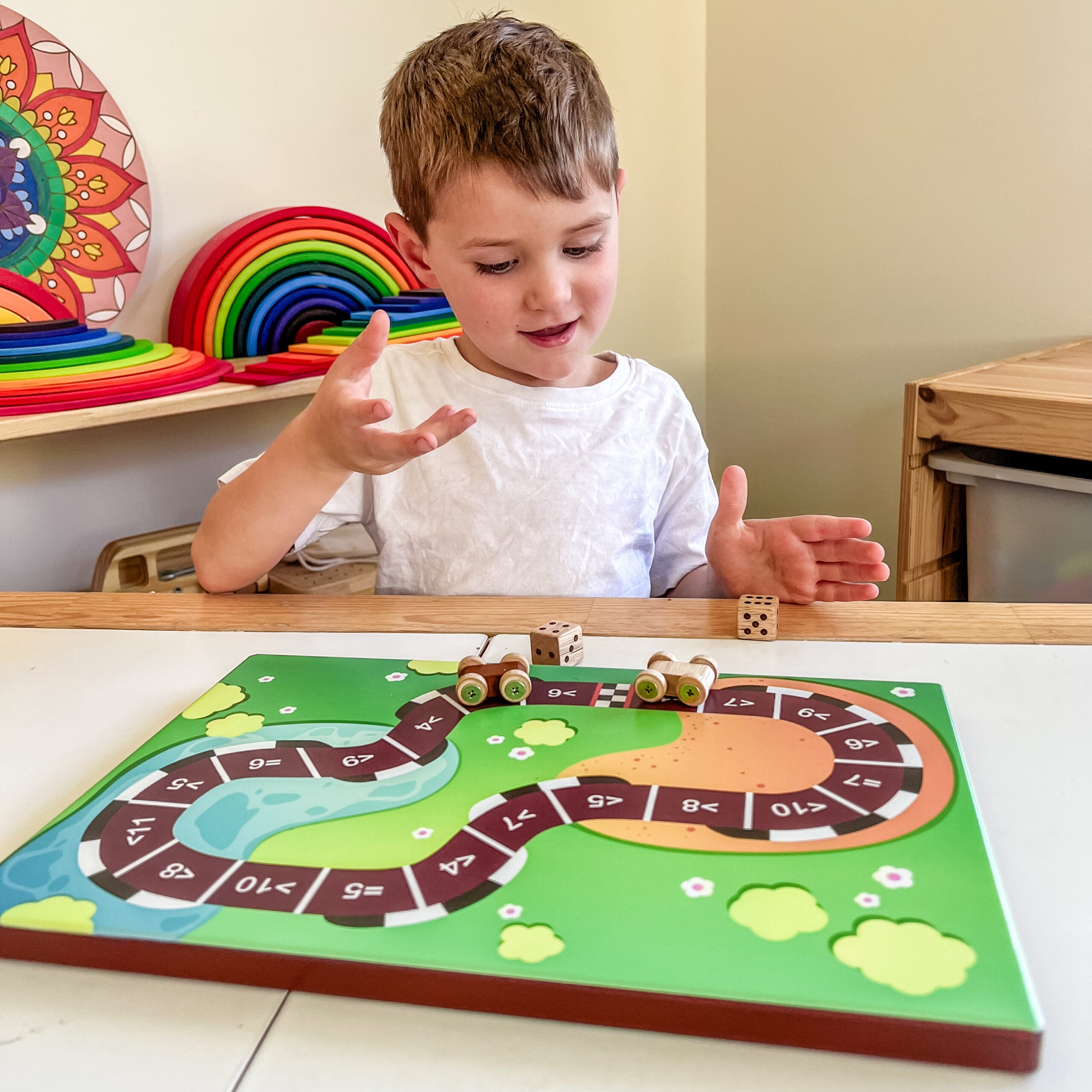 Get ready for a thrilling math adventure with Number Clash: Equate & Compare, a two-player game that combines strategy and learning. Each player takes turns rolling the dice and navigating a board filled with numbers, greater-than signs, smaller-than signs, and equal to signs.