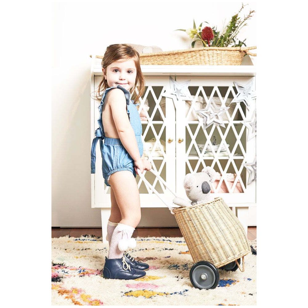 Adore her with pretty frills, this little romper is just the thing for spring and summer. The natural cotton construction will keep you new born baby or toddler nice and cool.
