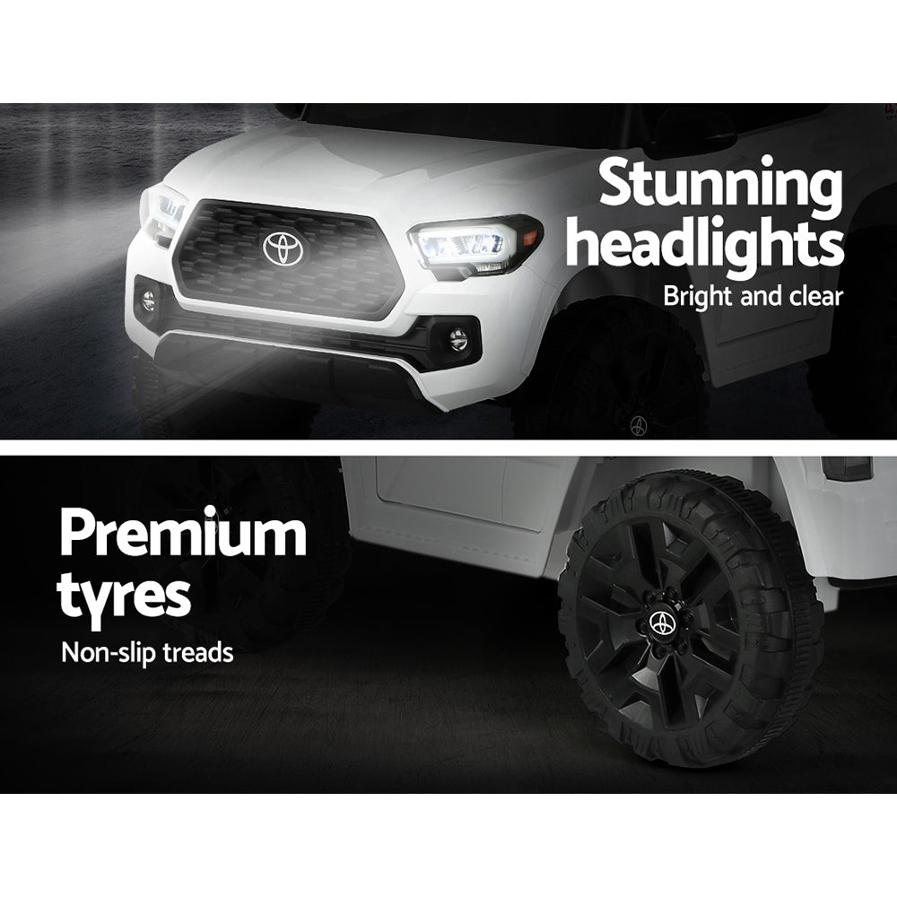 A perfect gift to your little drivers, our Rigo officially licensed Toyota Tacoma ride on car is designed to provide a real-like driving pleasure and experience. It's sure to make your passionate drivers happy with its looks, performance, and charisma and help foster gross motor skills in them. Our ride on car features a stylish and robust exterior design with a stunning lacquer finish. It has all-wheel suspension for shock-absorbing and ultimate comfort, premium slip-resistant tyres, smooth acceleration to prevent sudden jerks and stops, storage space for toys, and a spacious seat with a safety belt for maximum comfort and protection. Plus, it has bright headlights, powerful 70W twin motors, smart keyless start, and other functions like MP3 connection, flashing lights, horn, control board, forward/stop/reverse motion, and foot pedal switch for a real-like driving experience. Our ride on car is battery operated with 8-12 hours per full charge and comes with a SAA-approved charger for safer and faster charging. With two control modes, the adult remote-control function and EN71 Standard Safety of Toys certification ensures the safety of your child. Purchase this real-like and robust Rigo Toyota Tacoma ride on car and watch your kids having unlimited fun with their mates.