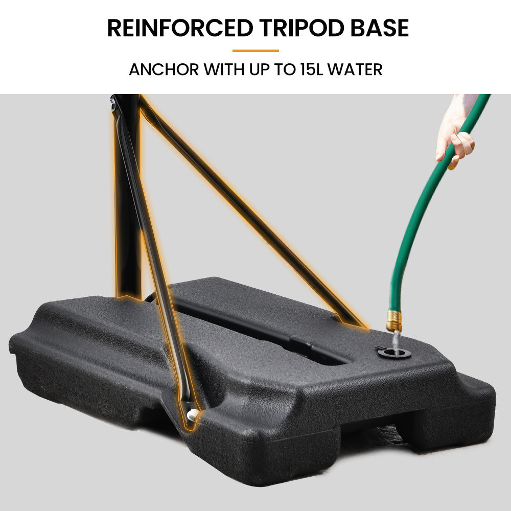 To provide a stable foundation the A Series has a large capacity base which can be easily filled with sand or water. It features a tough steel frame and durable backboard that can withstand every jump shot, layup and slam dunk.