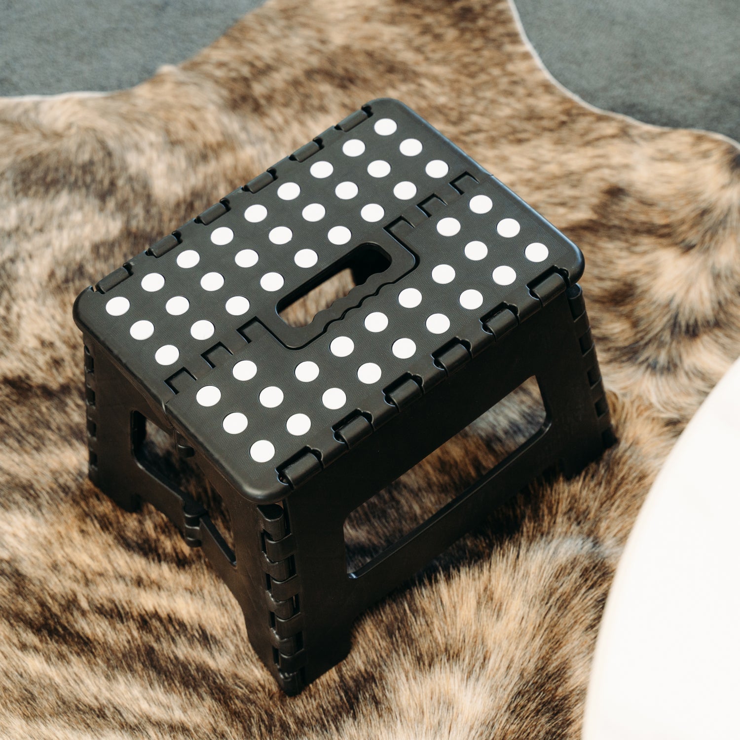 This folding stool is perfect for camping, fishing. The foldable legs keep it compact and portable. It will fit easily into your backpack or carry-on and is made of strong plastic that can bear 125kg weight.