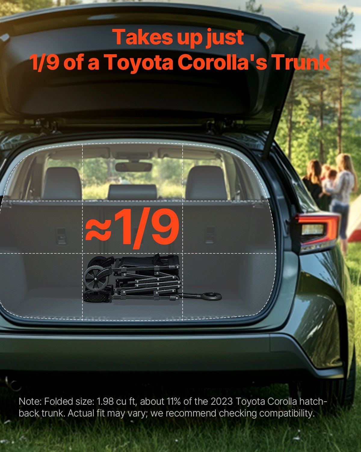 This folding cart has a load-bearing capacity of 225 lbs, with an internal space of 23.23x14.37x10.24 in / 590x365x260mm, which can accommodate most items and meet your transportation needs. Whether it's for shopping, gardening, camping or traveling, it can provide you with support.