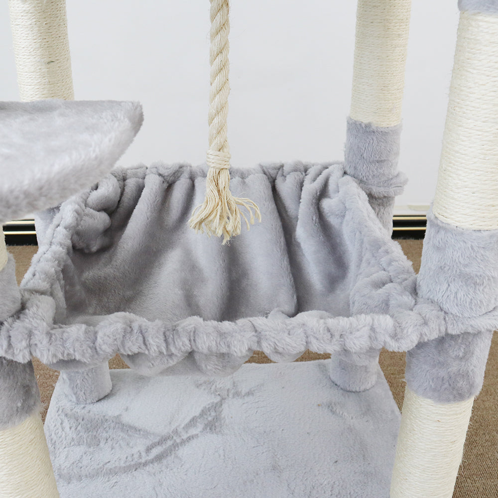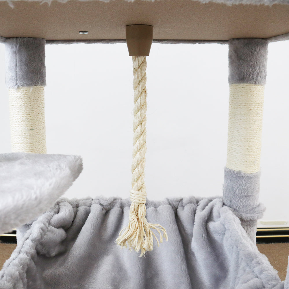 Hanging rope and fluffy balls for additional fun.