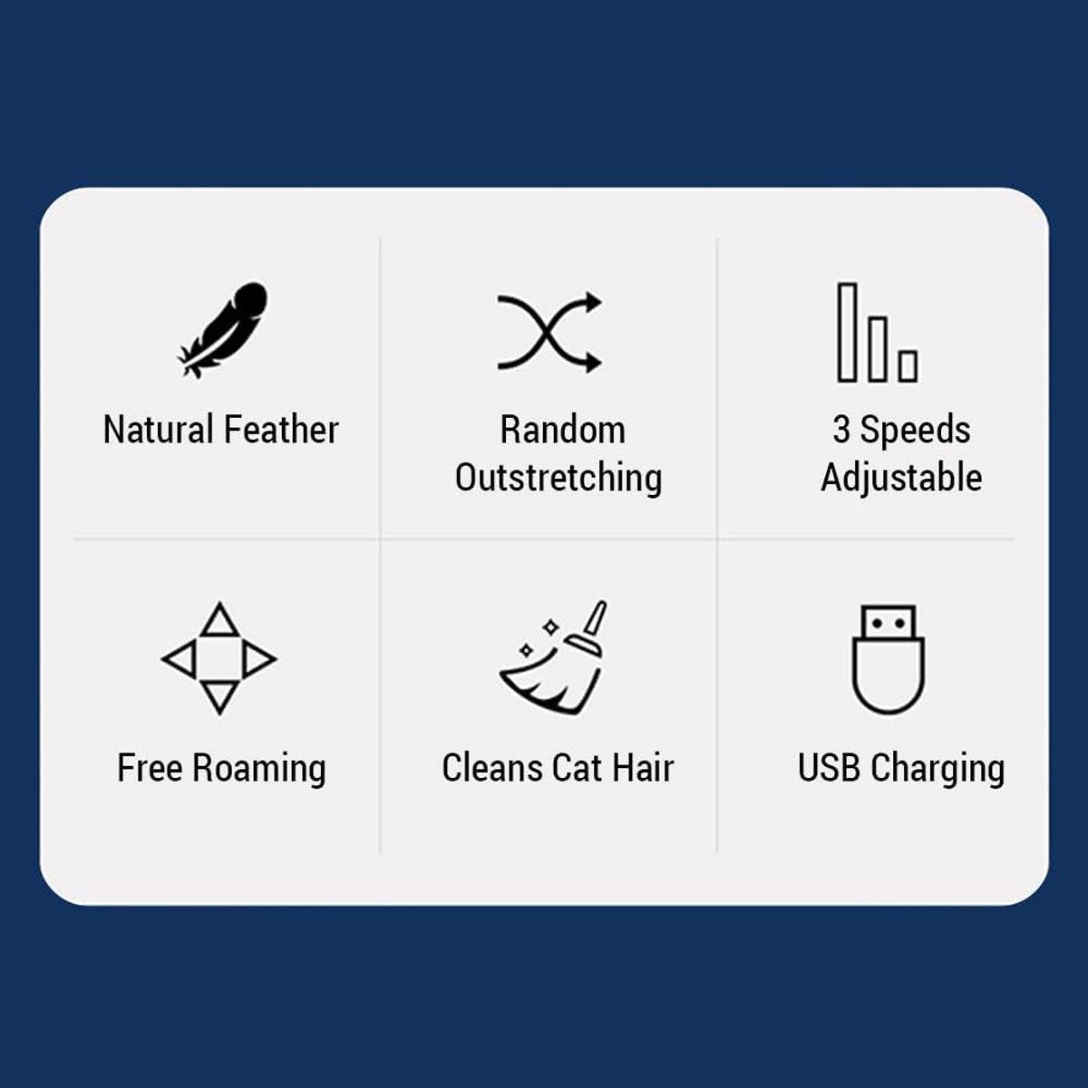 Random Feather Outstretching: Feathers randomly extend, keeping your cat’s hunting instincts engaged.