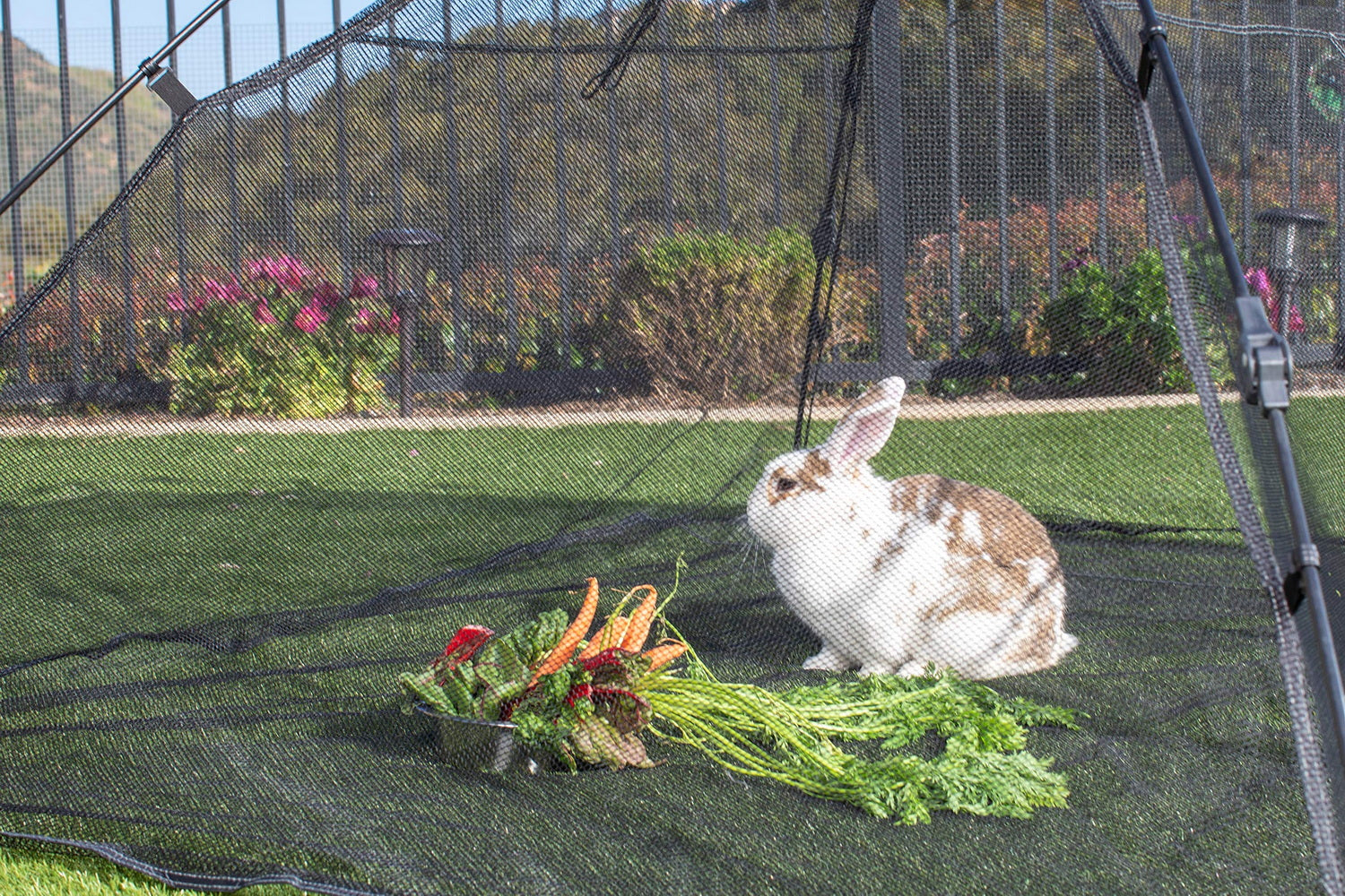 Perfect for everyday use on your deck, lawn, balcony, and more. Allows cats and other small pets to safely enjoy a day in the sun with a 360-degree view while keeping unwanted predators out.