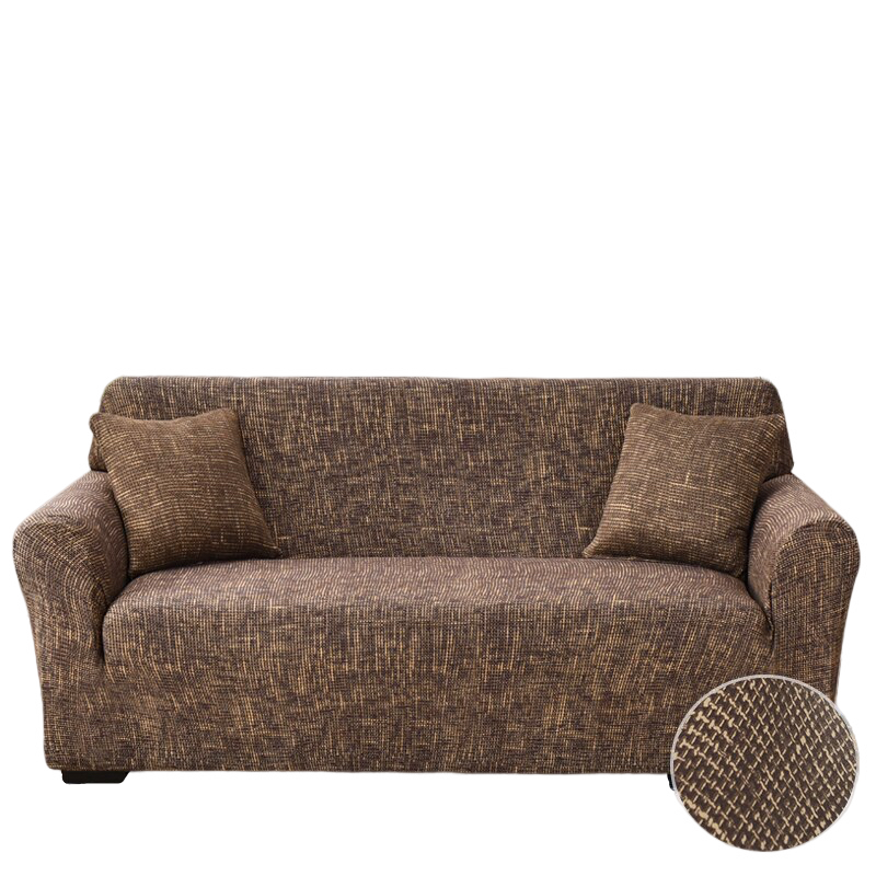 Anyhouz 4 Seater Sofa Cover Plain Brown Style and Protection For Living Room Sofa Chair Elastic Stretchable Slipcover