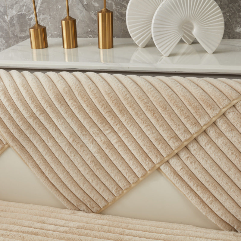 Anyhouz Sofa Towel Super Soft Linear Camel Rabbit Plush Quilted Couch Cover L-shaped Sectional Anti-slip Sofa Cover