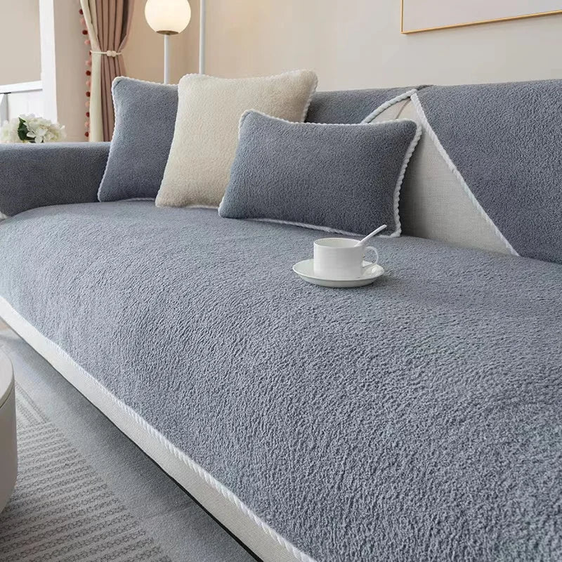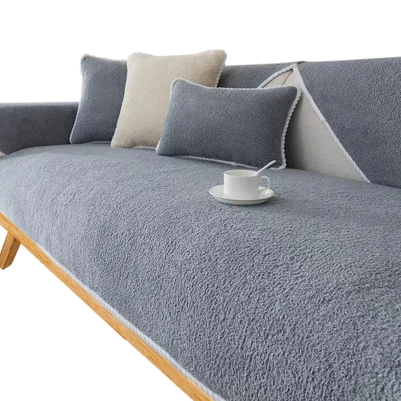 Anyhouz Sofa Towel Velvet Gray Sofa Cover for Living Room Sectional L-shape Non-slip Couch Cover