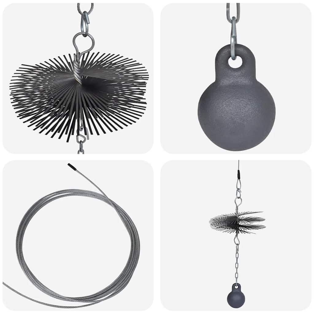 Our chimney cleaning brush is designed to clean your chimney quickly and effectively. Thanks to its ergonomic design, the brush can be attached to a thread with eyelets at both ends for easy cleaning. Made of high quality materials, this chimney cleaning brush is very durable. Delivery includes: 1 x chimney cleaning brush, 1 x ball with chain, 1 x thread.