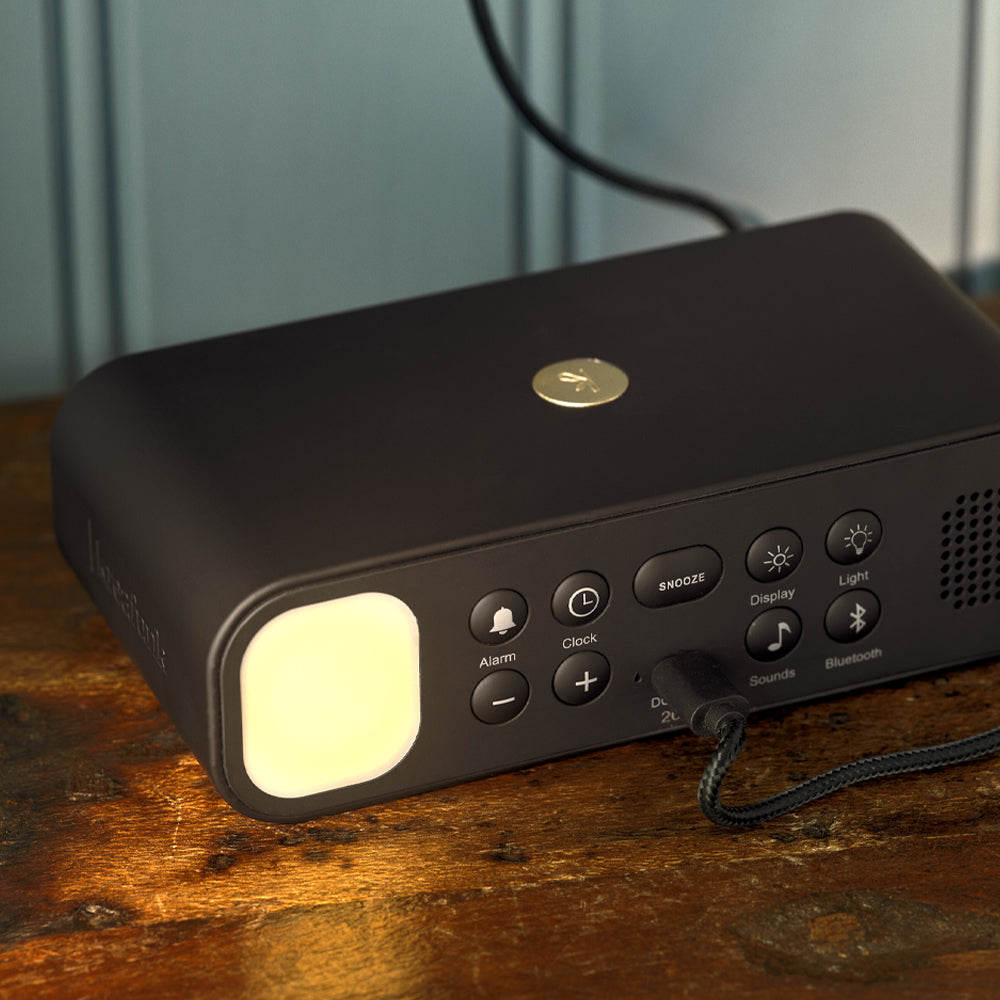 Wakie – Smart Alarm Clock with Wake-Up Light Wireless Charging.Start and end your day with calm. Wakie is a stylish, intelligently designed alarm clock that combines a gentle wake-up light with fast wireless charging, helping you rise and rest with ease.Crafted with a clean, minimalist aesthetic, all controls are discreetly positioned on the back—leaving the front smooth and uncluttered. Simply place your phone on top before bed; it’ll charge while you recharge.Enjoy soothing sleep sounds or energizing tunes through the built-in speaker, creating a peaceful atmosphere day and night. The LED display features adjustable brightness so the time remains visible without interrupting your rest—or turn it off entirely for complete darkness.Thoughtful, modern, and effortlessly simple – Wakie brings calm to every moment.