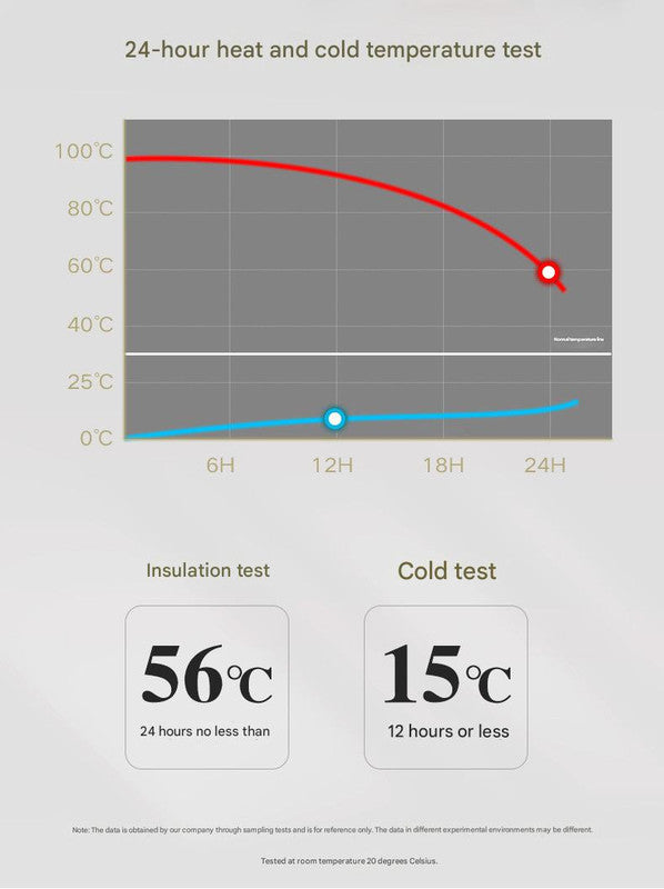 • Insulation: 24-hour heat retention (56 degrees Celsius), 12-hour cold retention (15 degrees Celsius)
