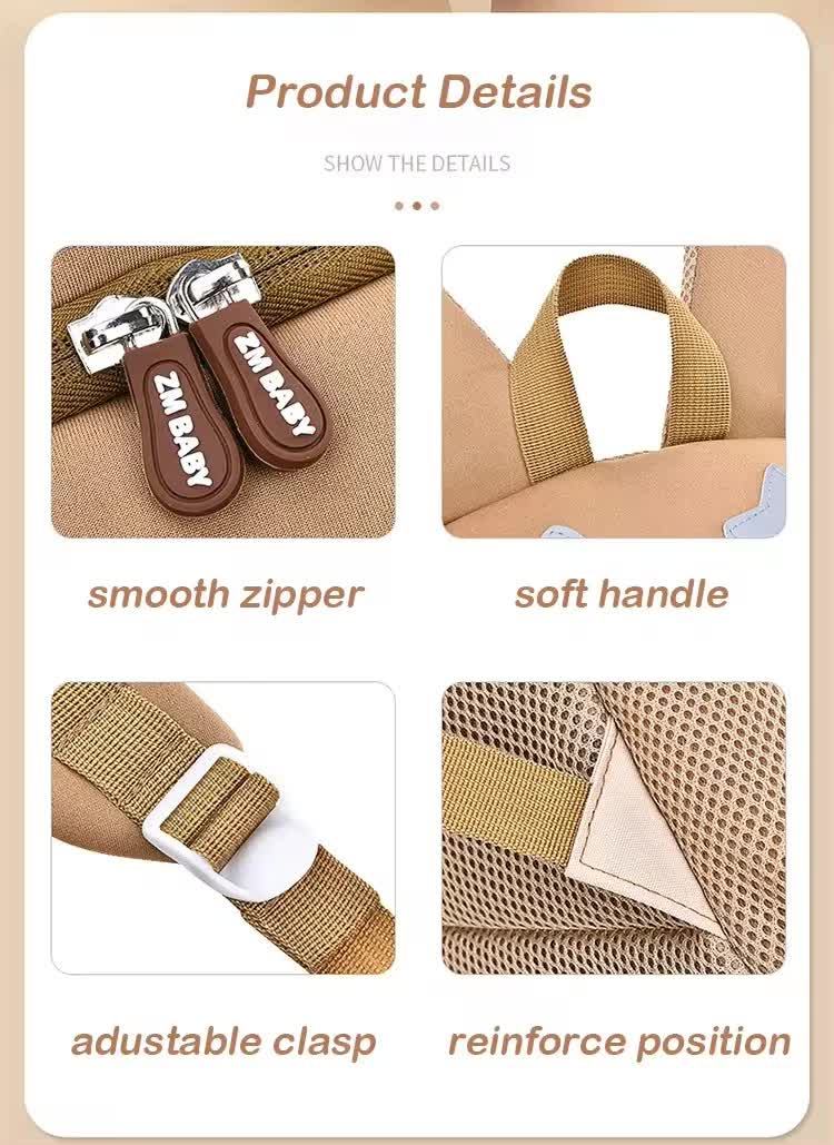 • 3D Animal Design: Features a charming cartoon animal face with playful ears and star-shaped zipper pulls that kids will love.