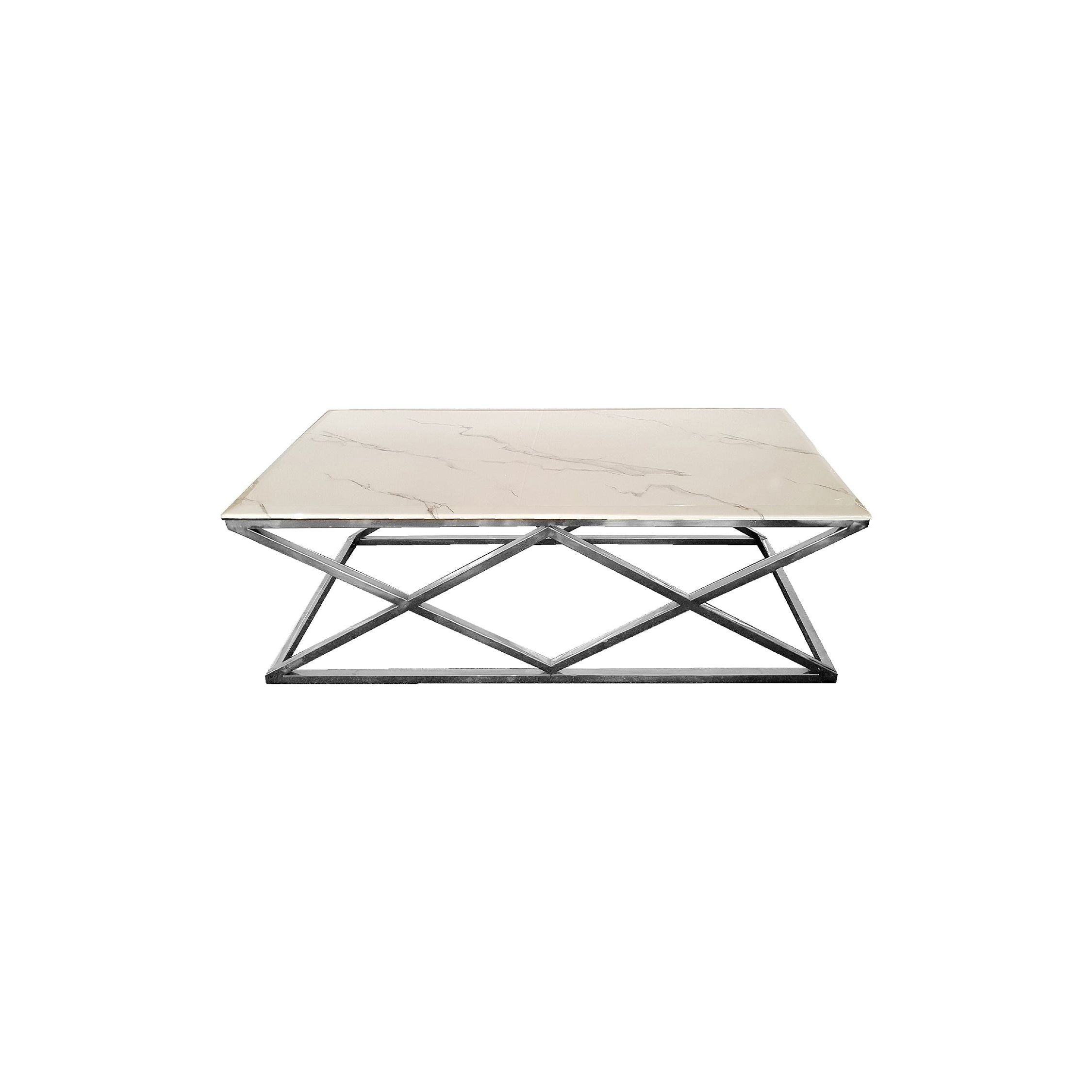 The Alsea Coffee Table is a sleek and modern piece of furniture featuring a tempered glass top or white marble and a polished steel frame finished in Gold, Silver, or Metal Black. The table is designed to add elegance to any living room or lounge area. Tops options include Tempered Clear Glass, Tempered Black Glass, or White Marble. Dimensions: 120cm x 60cm x 40cm.