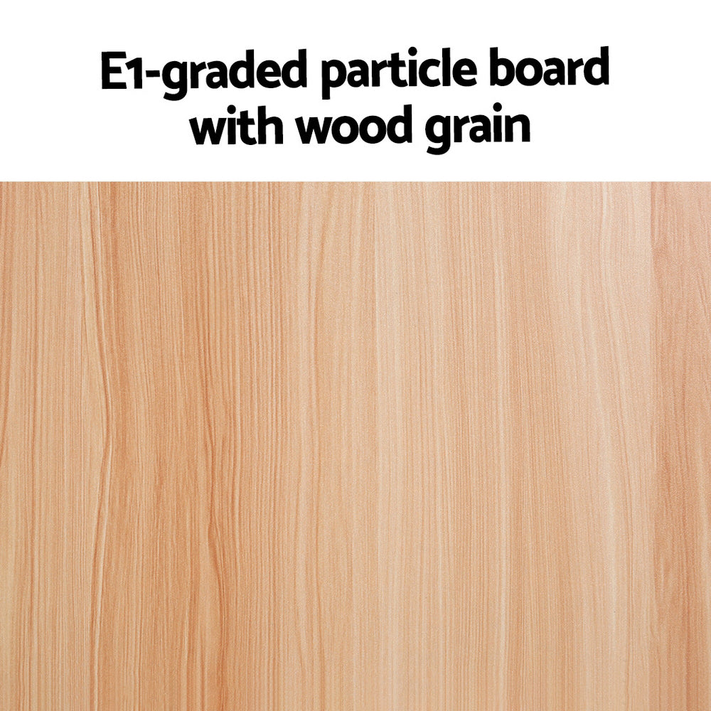 Sit back and relax in your living room with the Elva Coffee Table from Artiss. Constructed from E1-graded particle board with a melamine finish, the table is incredibly durable and has a 50kg weight capacity to hold your coffee, books, and more. The clear wood grain surface and Scandi-style design are suited to most modern homes. The semicircle tabletop is incredibly stylish and will fit nicely against your wall, chair, or other space. The rounded edge is not only stylish but safer for children and pets. An anti-slip base prevents the table from moving out of place, keeping your items safe from accidental knocks. Finally, the table is easy to assemble, so you can put your feet up in no time. Bring style and functionality to your space with the Elva Coffee Table from Artiss.