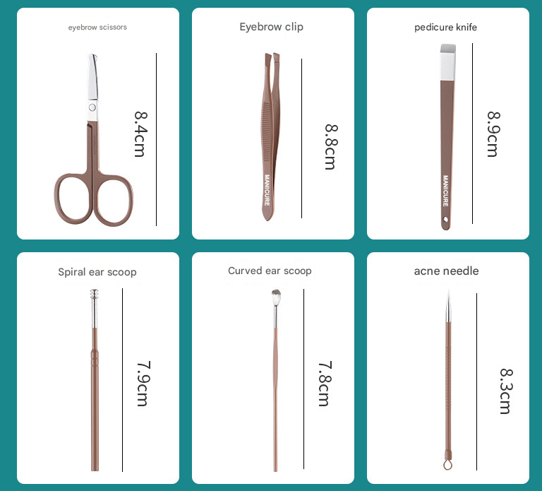 • Complete 13-in-1 Grooming Kit: Includes a full suite of essential tools for manicures, pedicures, eyebrow shaping, and facial care, ensuring you have the right tool for every grooming task.