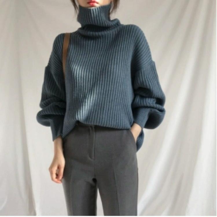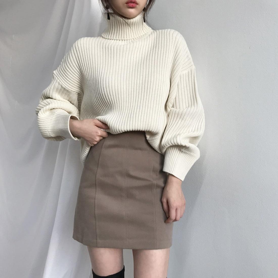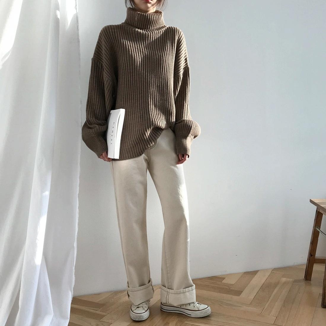 • 1 x Solid Colour Turtleneck Outer Wear Pullover Casual Sweater Beige - Free Size