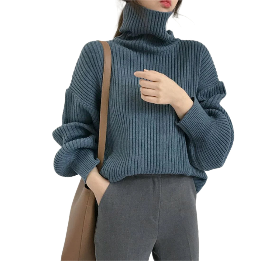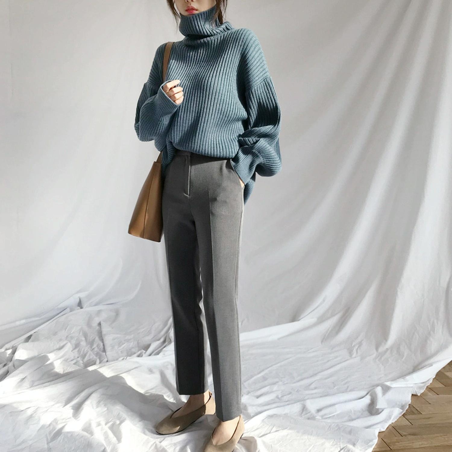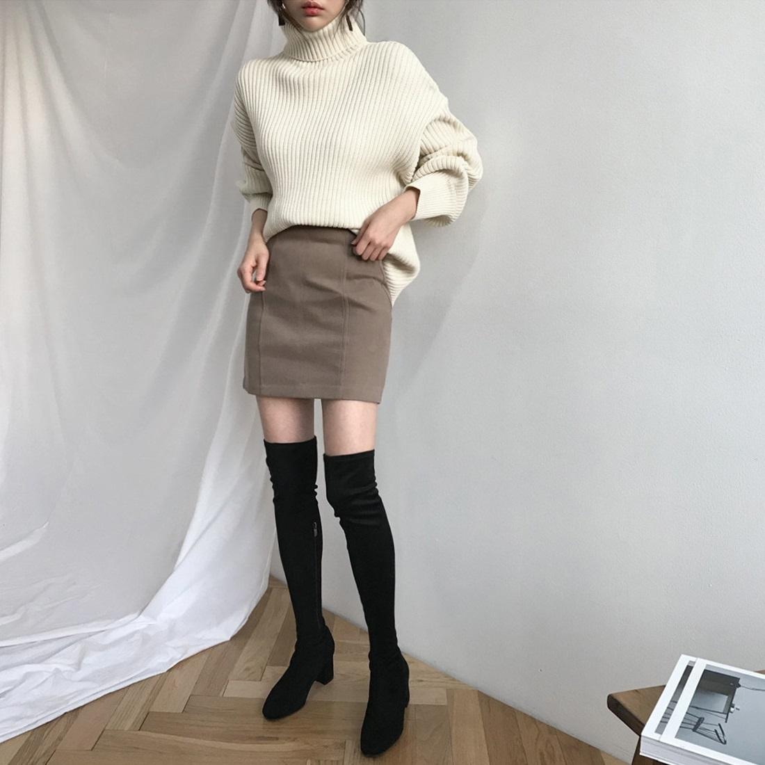 • 1 x Solid Colour Turtleneck Outer Wear Pullover Casual Sweater Beige - Free Size