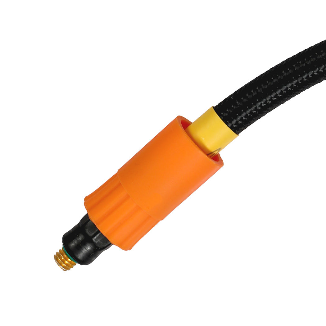 With its lightweight ABS housing and braided air hose with metal nozzle, this portable air pump is easy to carry and built to last. A built-in LED light (white + flashing red) keeps you safe during nighttime emergencies.