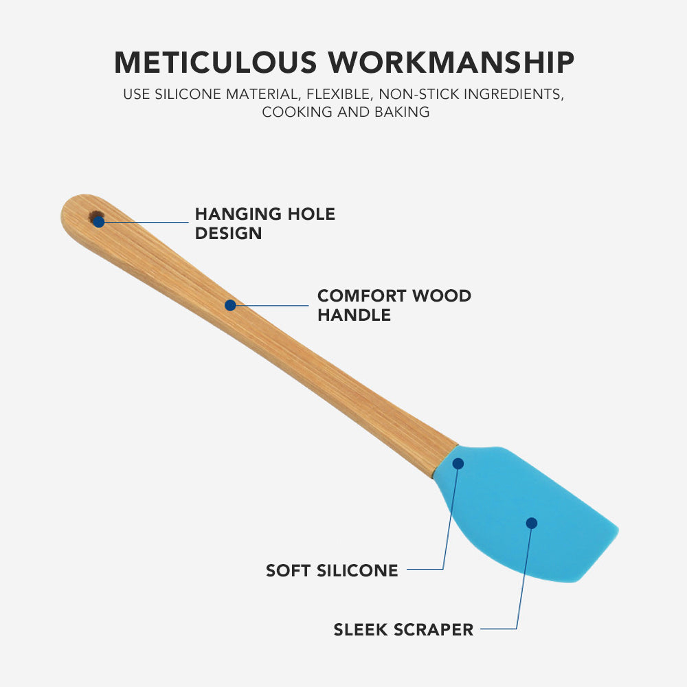 Classic in shape and design, the 5 Piece Silicone & Bamboo Mini Utensils Set is perfect for all kitchen preparations. Designed with food-grade silicone heads and sustainable bamboo handles, these utensils won't scratch pots and pans and are just the right size to fit in jars and tight spaces.