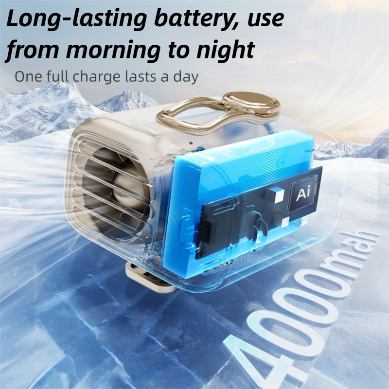 • 3-in-1 Design: Easily converts between three modes: Waist Clip for hands-free cooling, Bag Clip/Handheld for instant relief, and Desktop Stand for office or home use.