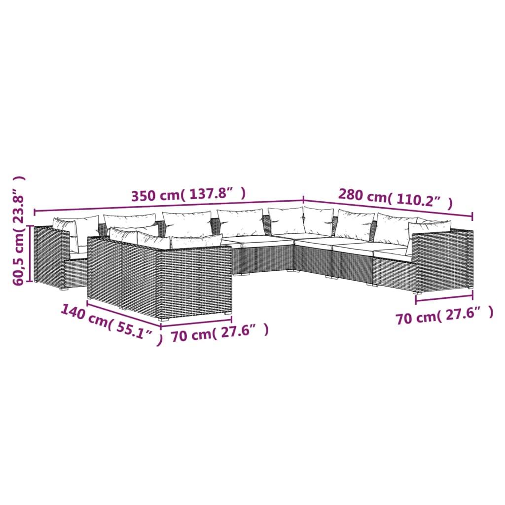 10 Piece Garden Lounge Set with Cushions Brown Poly Rattan