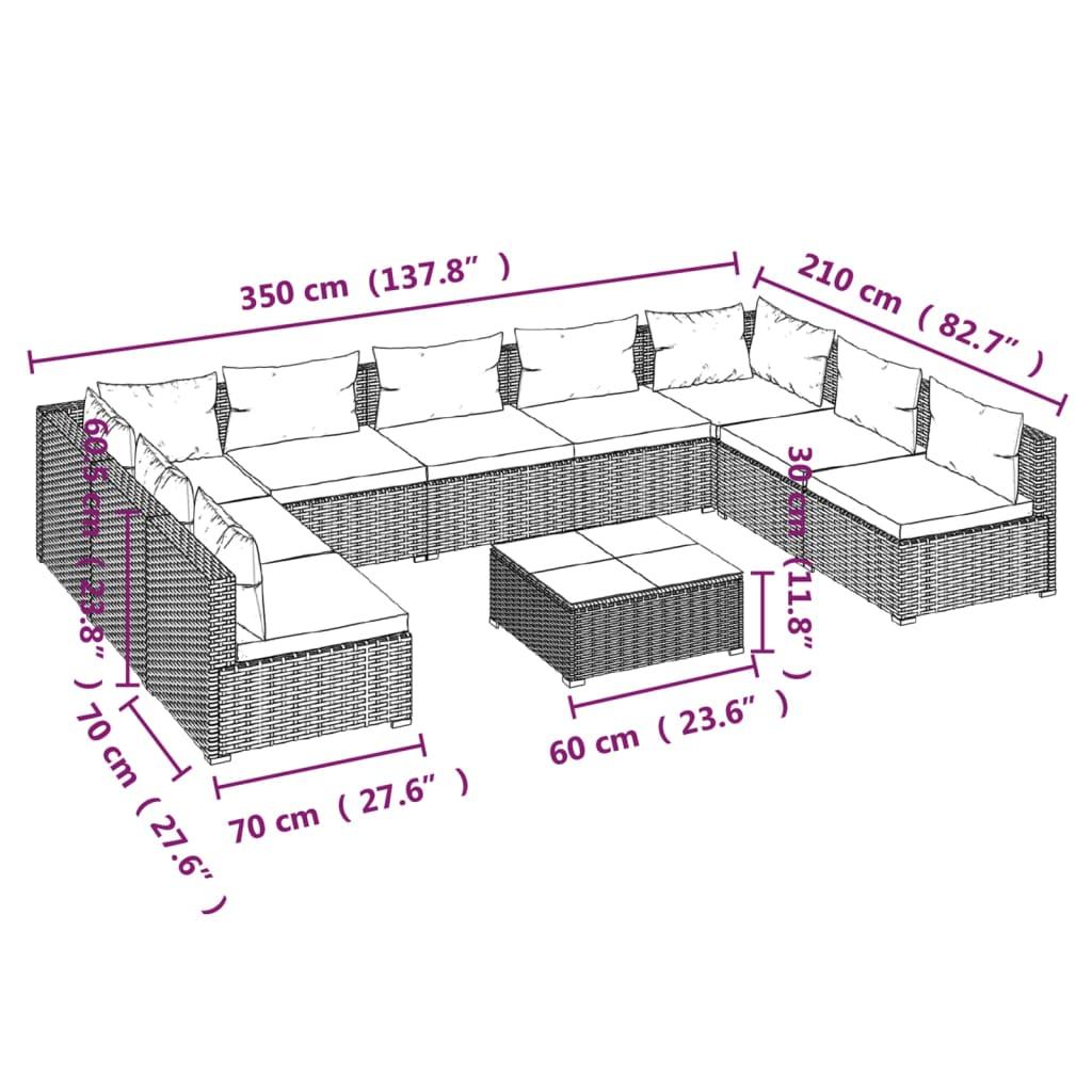 10 Piece Garden Lounge Set with Cushions Poly Rattan Brown