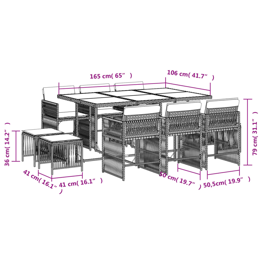 11 Piece Garden Dining Set with Cushions Beige Poly Rattan