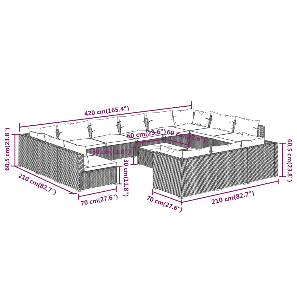 14 Piece Garden Lounge Set with Cushions Brown Poly Rattan