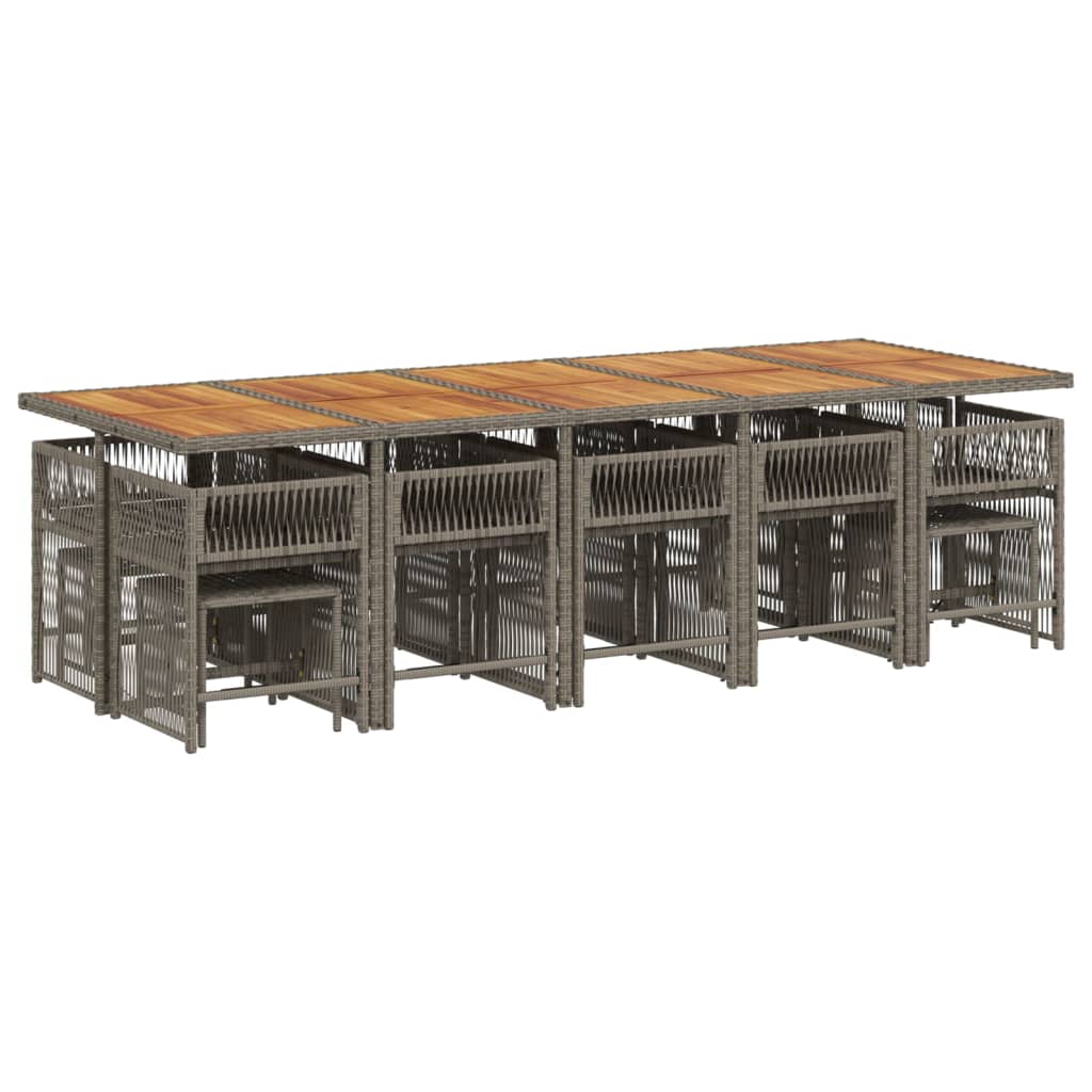 15 Piece Garden Dining Set with Cushions Grey Poly Rattan