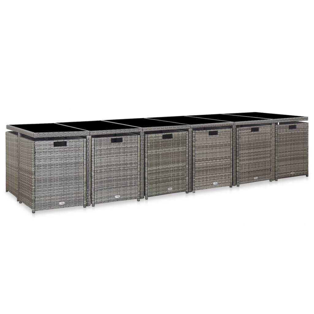 17 Piece Outdoor Dining Set with Cushions Poly Rattan Grey