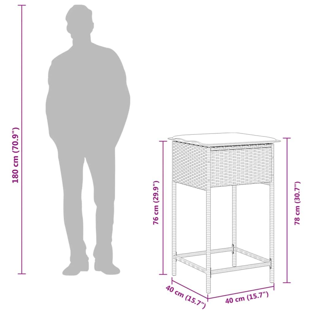 This trendy garden bar set, combining both style and function, is surely meant to be the centrepiece of your garden, patio, and any other living space. Durable material: PE rattan, also known as poly rattan, is a strong, low-maintenance synthetic material that looks like natural rattan. It's lightweight, easy to clean, and commonly used for outdoor furniture due to its durability and weather-resistant properties.Comfortable seat experience: This outdoor furniture, complete with thickly padded cushions, offers a comfortable seating experience.Removable and washable cover: These seat cushions feature removable covers for easy washing and maintenance.Robust and stable frame: The powder-coated steel frame ensures that the garden furniture is strong and stable for daily outdoor use. Good to know:To make sure your outdoor furniture stays beautiful, we recommend protecting it with a waterproof cover.