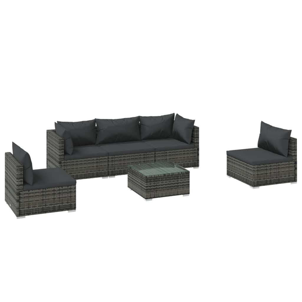 6 Piece Garden Lounge Set with Cushions Poly Rattan Grey