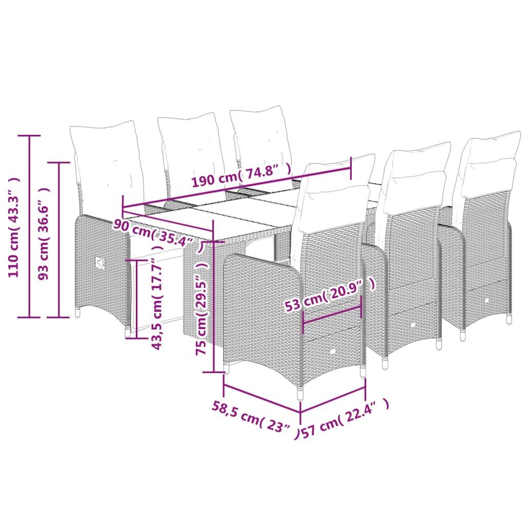 Enjoy a coffee or have a chat with your family and friends in the garden, backyard, or on the balcony with this comfortable bistro set! Durable material: PE rattan, also known as poly rattan, is a strong, low-maintenance synthetic material that looks like natural rattan. It's lightweight, easy to clean, and commonly used for outdoor furniture due to its durability and weather-resistant properties.Adjustable backrest and footrest: This garden seat has a handle. You can adjust the backrest and footrest to any position by pulling the handle, and quickly return it to its original position.Comfortable seat experience: This outdoor furniture, complete with thickly padded cushions, offers a comfortable seating experience.Removable and washable cover: These seat cushions feature removable covers for easy washing and maintenance. The back cushions have a flap at the back for easy attachment to the backrests.Glass tabletop: The outdoor table's top is made from strong and durable tempered glass, making it easy to clean with a damp cloth and adding a touch of elegance to your outdoor space. Good to know:To make sure your outdoor furniture stays beautiful, we recommend protecting it with a waterproof cover.