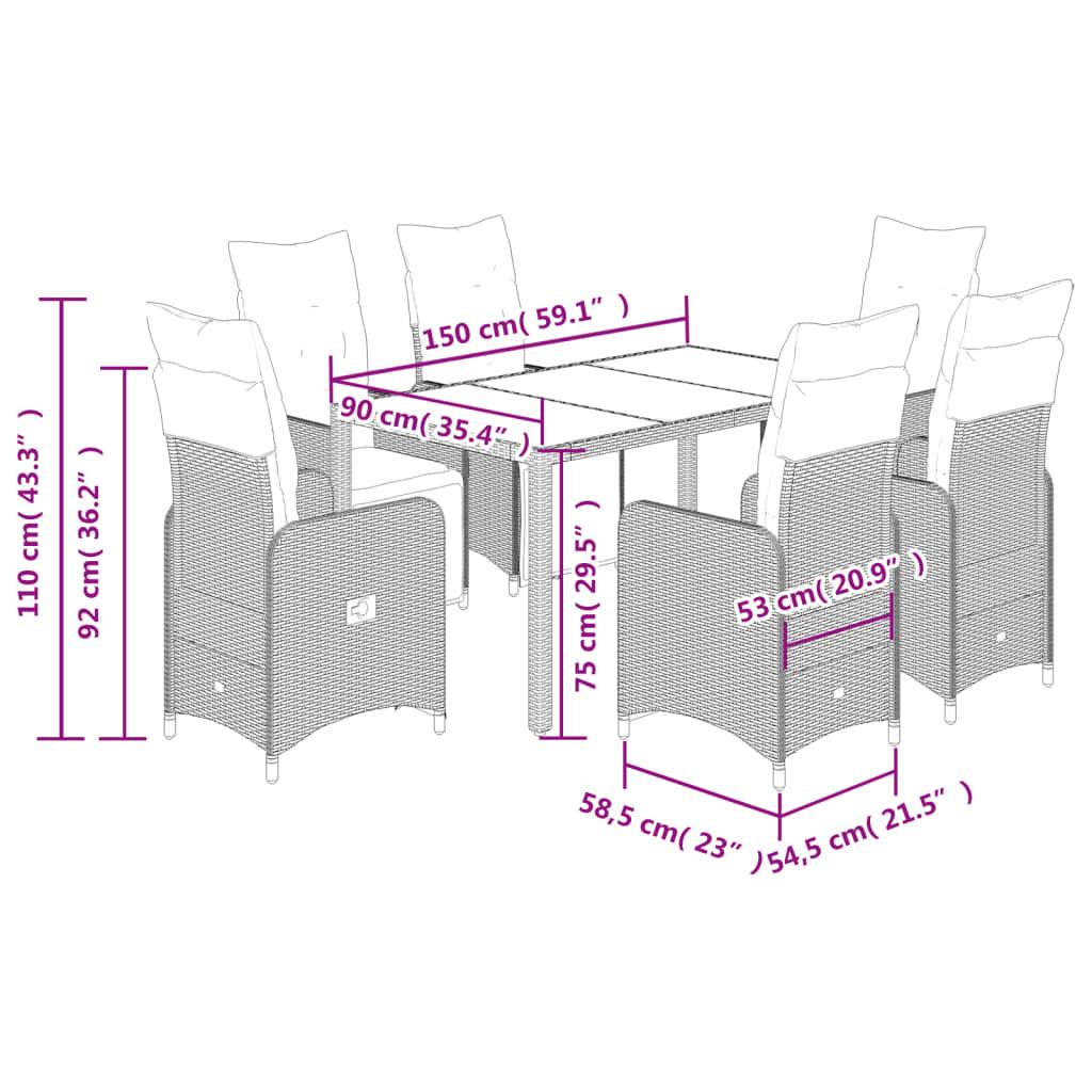 7 Piece Garden Bistro Set with Cushions Grey Poly Rattan
