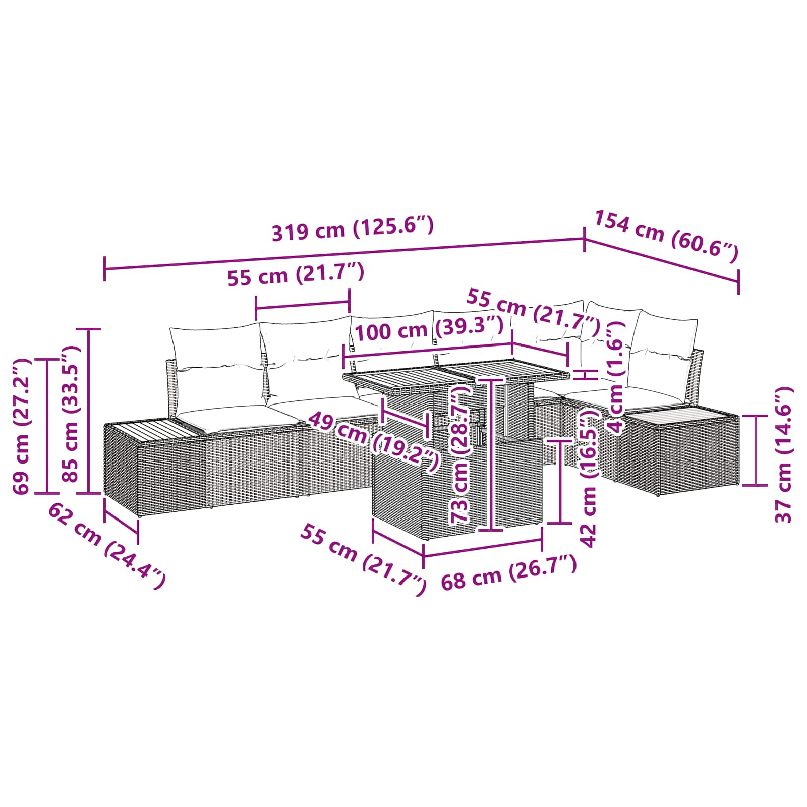• Overall dimensions: 100 x 55 x 73 cm (L x W x H)