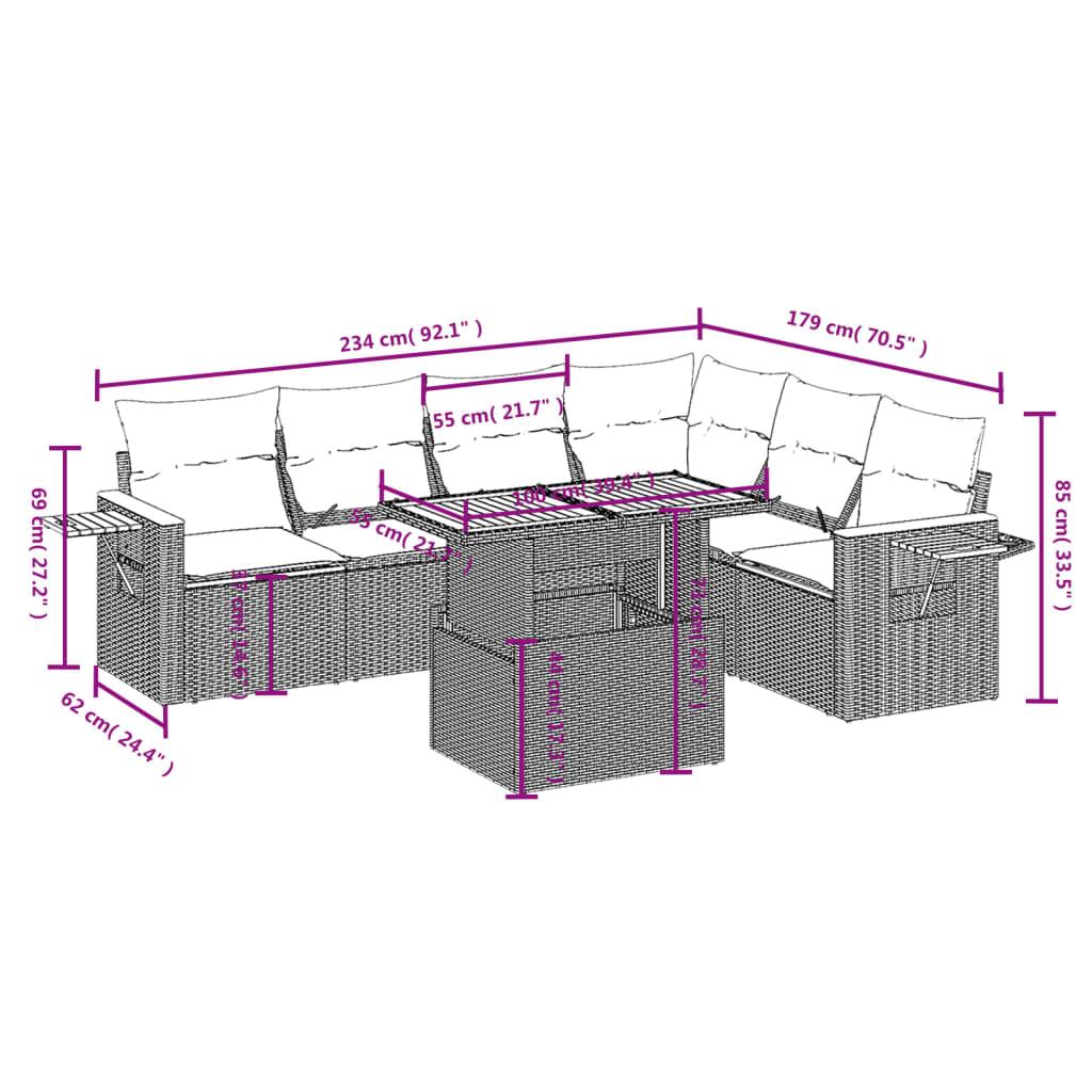 7 Piece Garden Sofa Set with Cushions Beige Poly Rattan