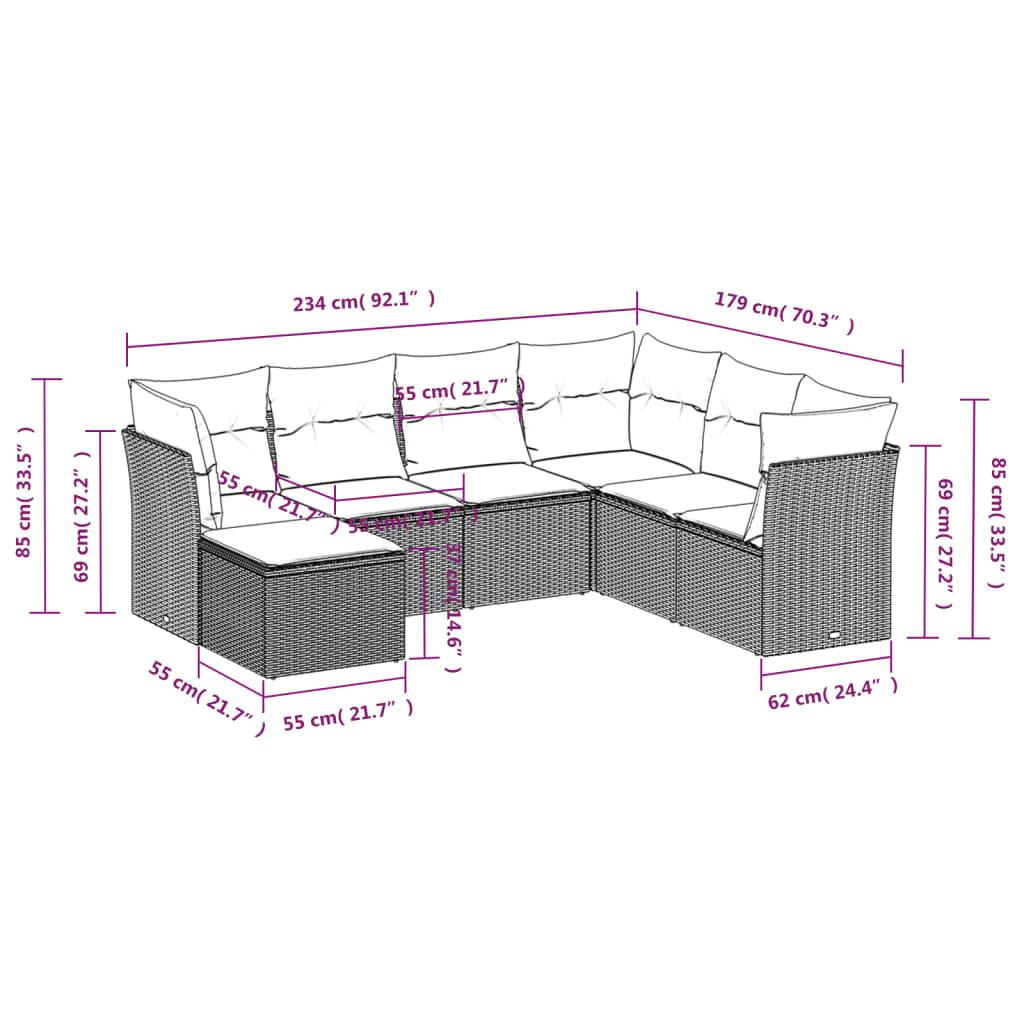 7 Piece Garden Sofa Set with Cushions Grey Poly Rattan