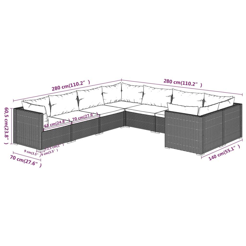 8 Piece Garden Lounge Set with Cushions Poly Rattan Black