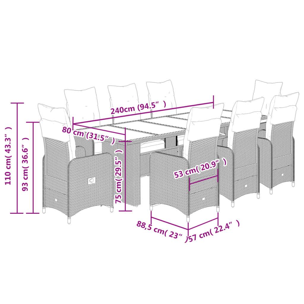 9 Piece Garden Bistro Set with Cushions Black Poly Rattan