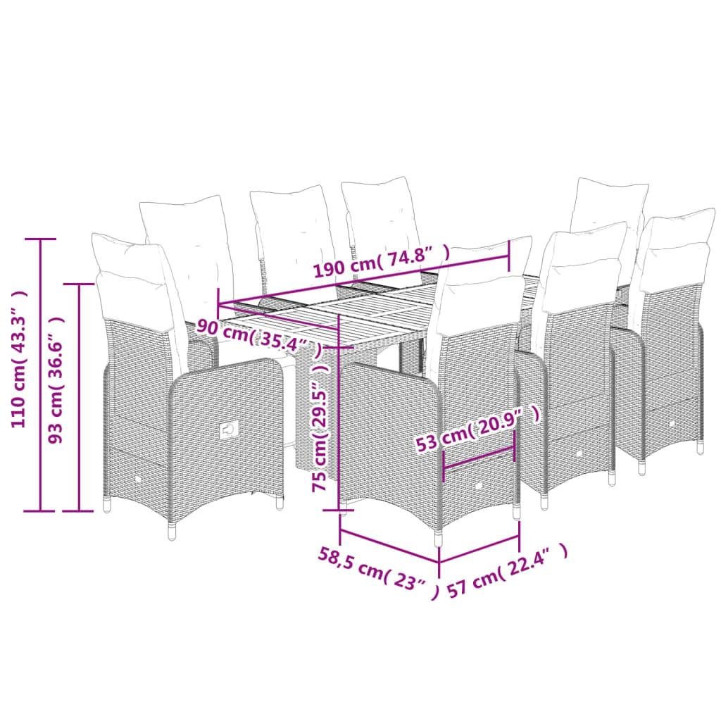 9 Piece Garden Bistro Set with Cushions Grey Poly Rattan