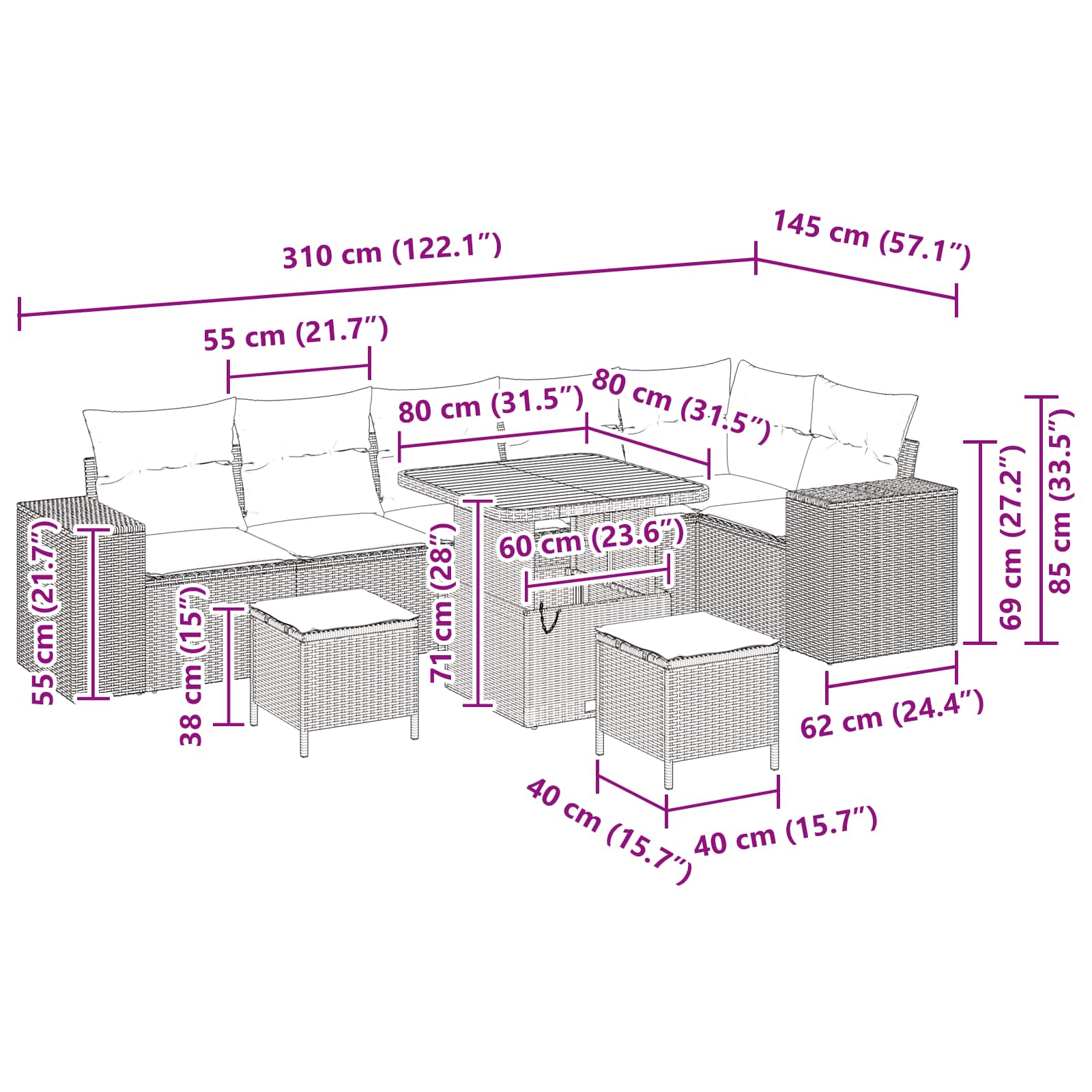 Garden Sofa Set with Cushion 9 pcs Black Poly Rattan
