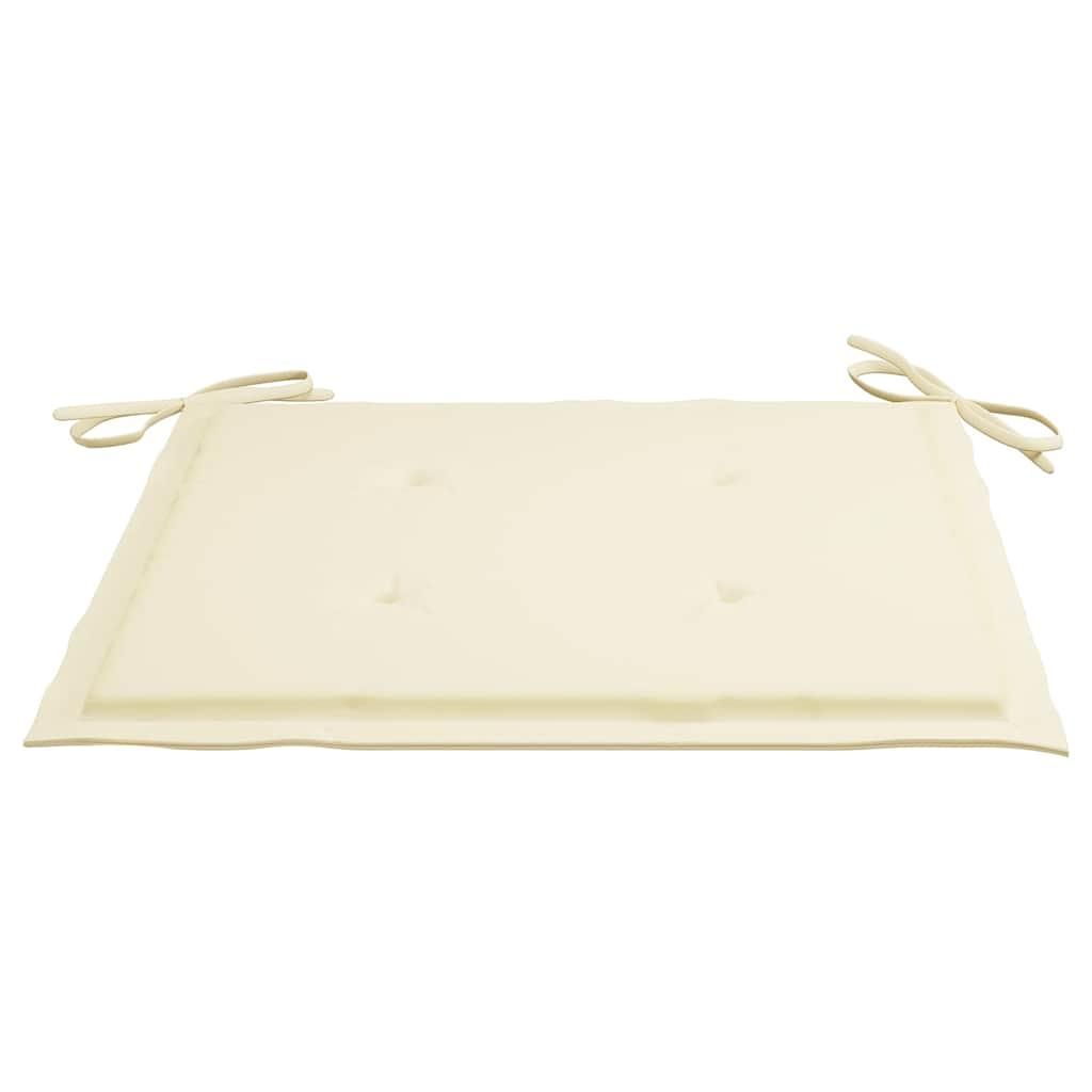 These wooden folding garden chairs, featuring a simplistic yet elegant design, is meant to bring you a comfortable seating experience. Constructed from extremely durable teak hard wood, this piece of teak furniture has been seasoned, kiln dried and then fine sanded to give a very smooth appearance. Teak wood is known for its exceptional strength and weather resistance, making it far more suitable for garden furniture than any other kind of wood. Teak wood is the perfect choice if you want to purchase a long lasting piece of garden furniture. The sanded surface is easy to clean with a damp cloth. These garden dining chairs are also lightweight, making them completely flexible and easy to move around. The outdoor chairs can be easily folded when not in use. Additionally, the included seat cushions also provide extra seating comfort. Note: In order to extend the life of your outdoor furniture, we recommend you to clean it regularly and do not leave it outdoors without protection unnecessarily.Clean: Use a mild soap solutionStoring: If possible, store in a cool, dry place indoors. If the product is stored outdoors, protect it with a waterproof cover. Wipe and dry the excess water or snow from flat surfaces after a rain or snowfall. Allow sufficient air circulation to avoid moisture-related damage.