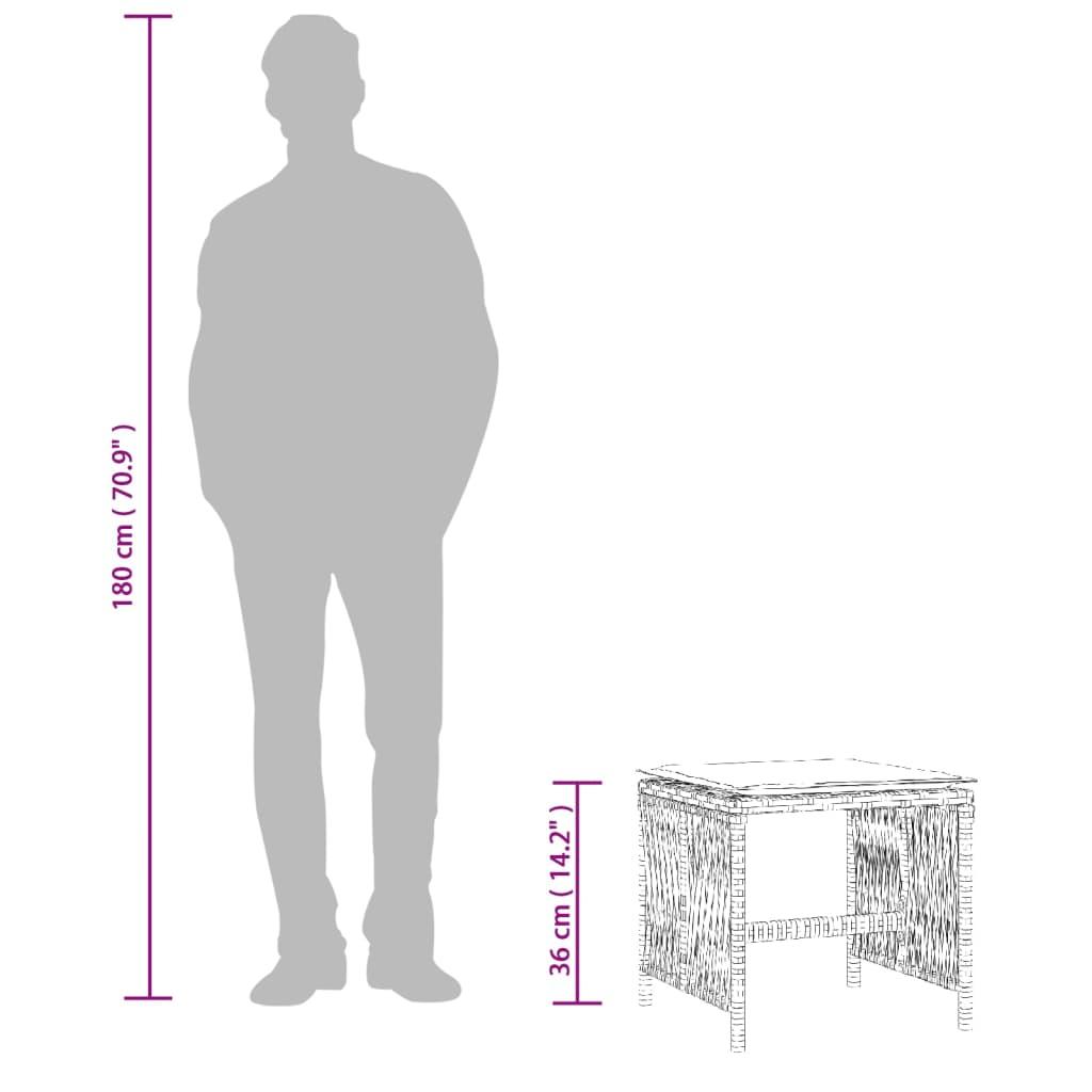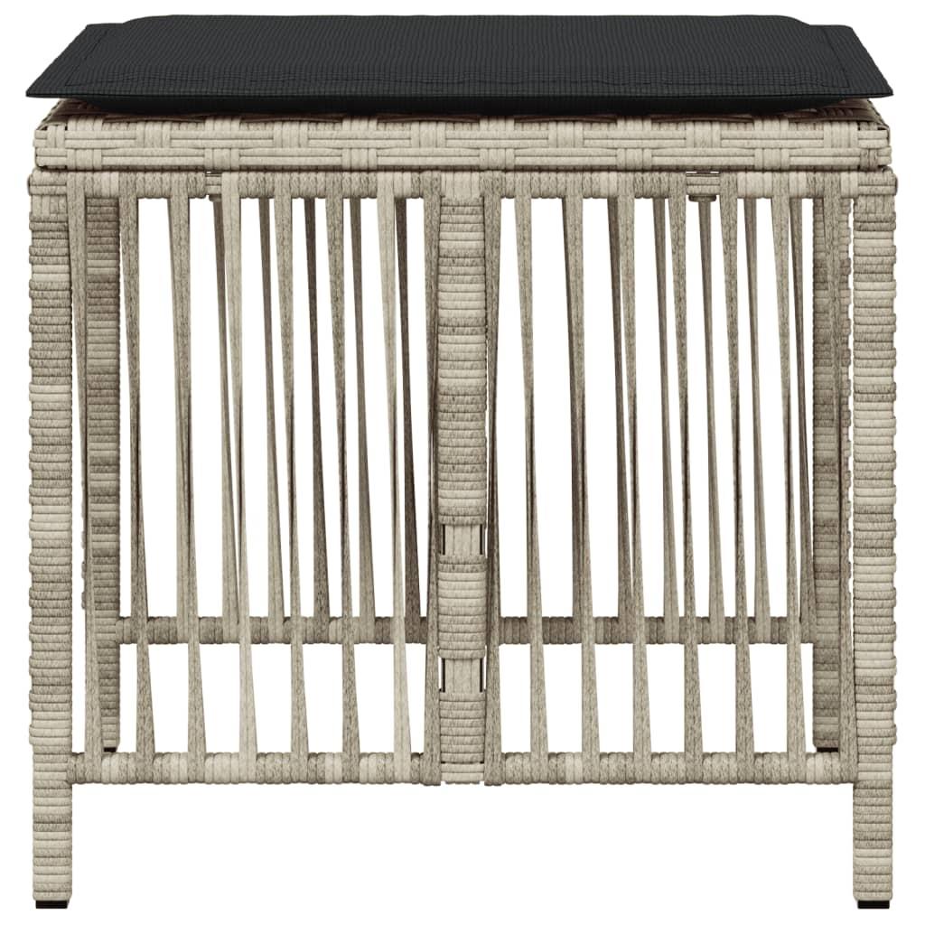 Relax and enjoy the outdoors on these comfortable garden stools! Durable material: PE rattan, also known as poly rattan, is a strong, low-maintenance synthetic material that looks like natural rattan. It's lightweight, easy to clean, and commonly used for outdoor furniture due to its durability and weather-resistant properties.Comfortable seat experience: This outdoor furniture, complete with thickly padded cushions, offers a comfortable seating experience.Removable and washable cover: These seat cushions feature removable covers for easy washing and maintenance. Robust and stable frame: The powder-coated steel frame ensures the garden furniture is strong and stable for daily outdoor use. Good to know:To make sure your outdoor furniture stays beautiful, we recommend protecting it with a waterproof cover.